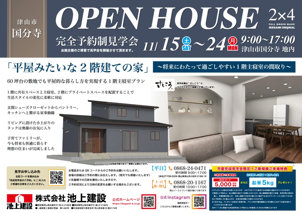 (株)池上建設では、津山市国分寺地内にて完全予約制見学会を開催します。