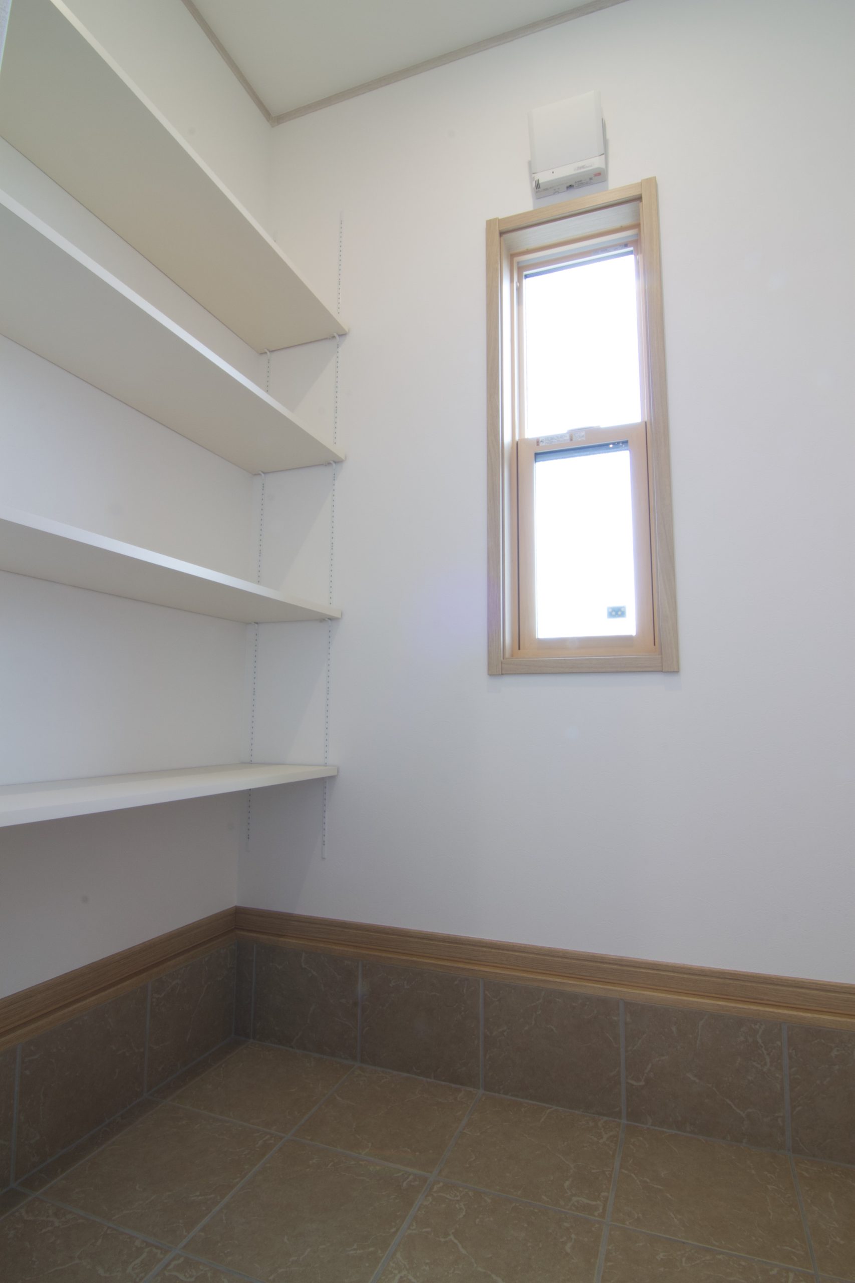 ツーバイフォー工法で建てられた平屋のおうちです。玄関には大容量の玄関収納を設けました。