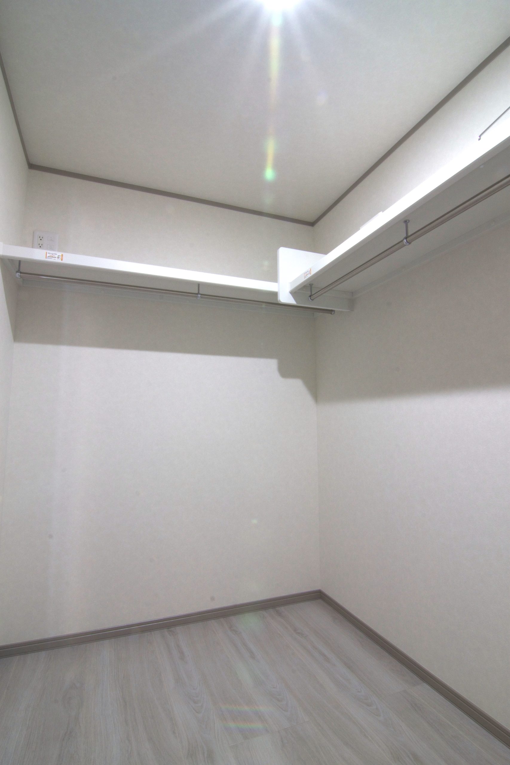 収納力抜群のWICは居室に繋げることなく独立型としました。居室の一部としてではなく、収納として独立させることで居室はすっきりと保てます。