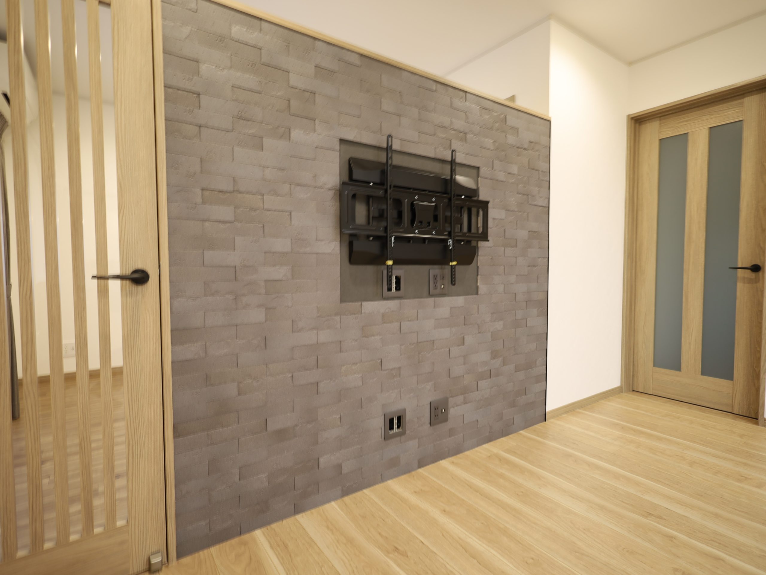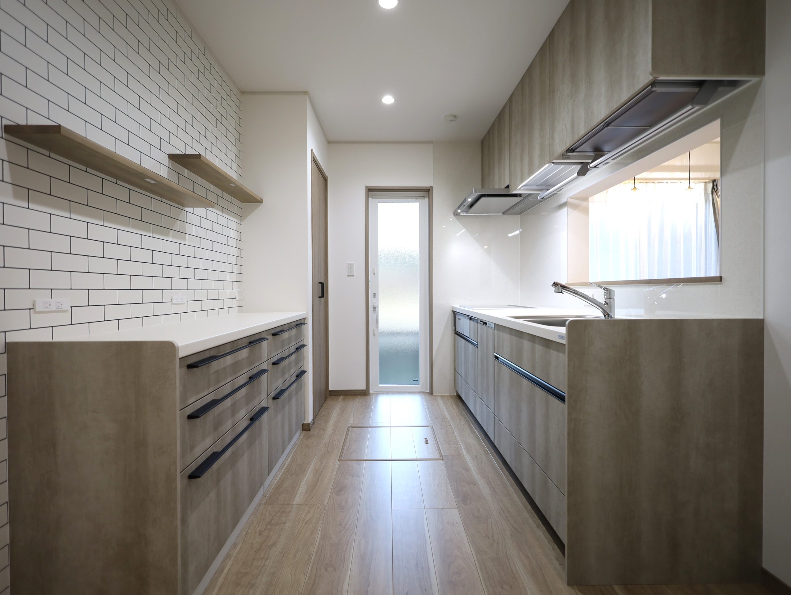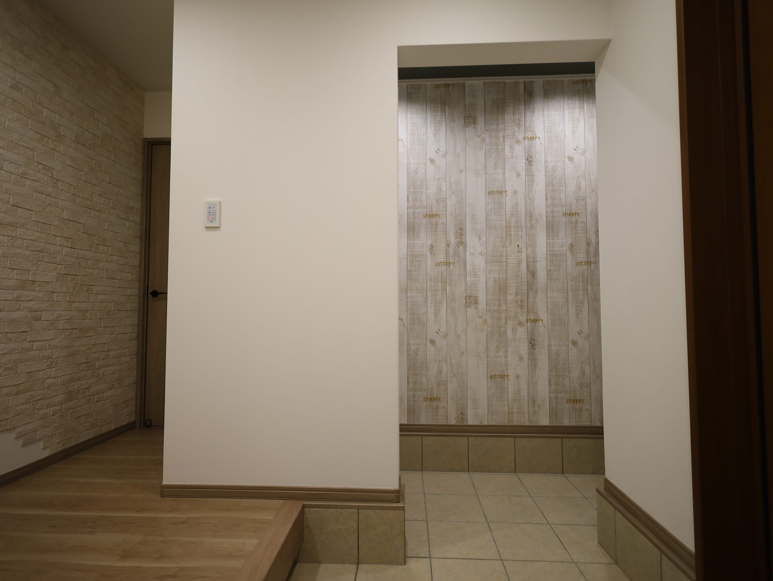 1階のすべてをフルリフォームし、新しい住まいに生まれ変わったマイホーム。独立した和室をペットルームにし、廊下と共にLDKに組み込んだことで家族とペットと暮らす広々とした大空間を実現。お客様を迎える玄関ホールには機能性タイルのエコカラットをデザイン貼りし、印象的な雰囲気に。キッチン、洗面化粧台、システムバスにはクリナップ製のハイグレードモデルを採用。リビングのTV背面にはダークカラーのエコカラットを施工し、空間に奥行を持たせながら高級感を演出。ご夫婦の夢をリフォーム工事で叶えた、お洒落で暮らしやすい北欧テイストの住まいが完成しました。