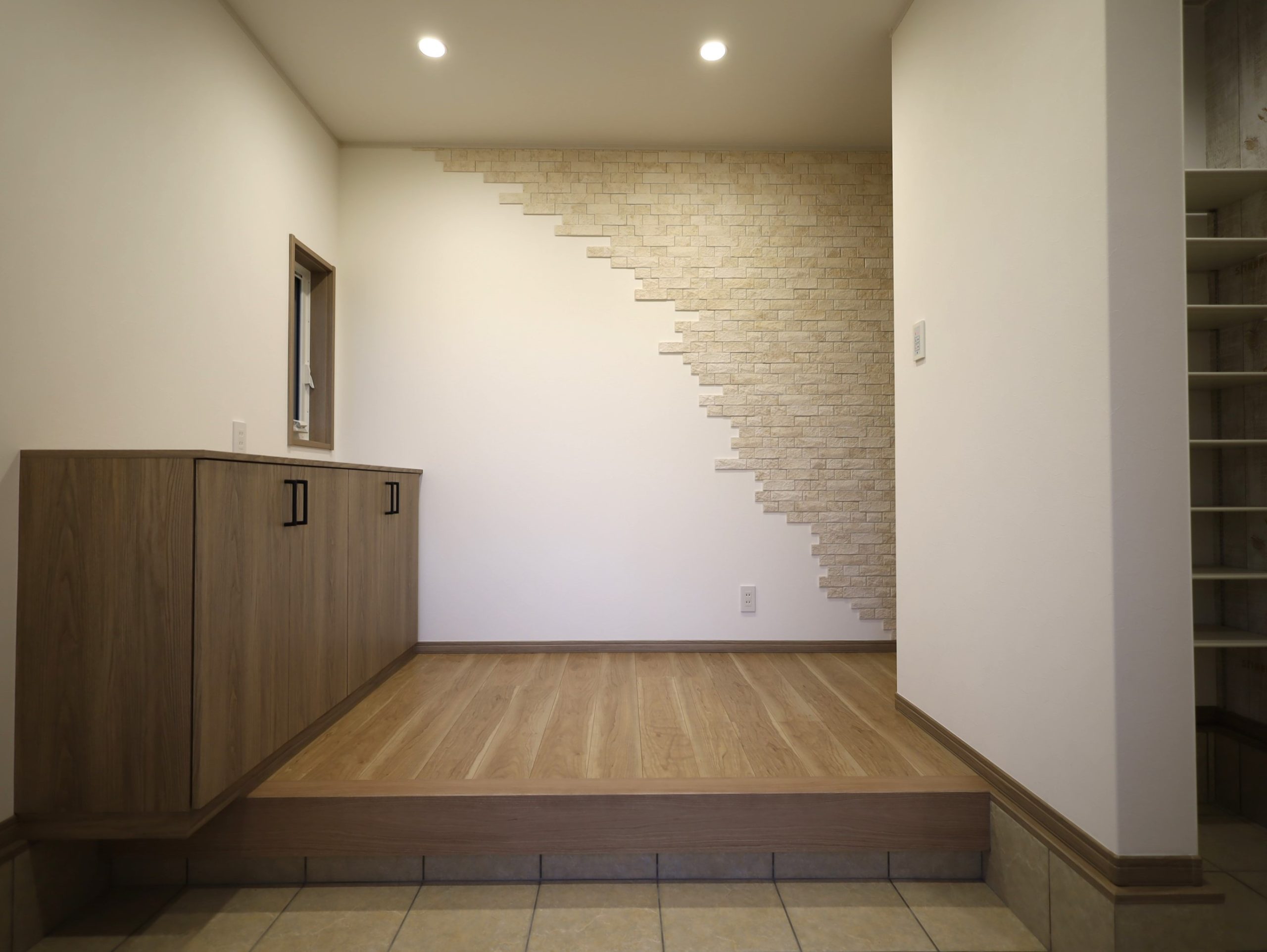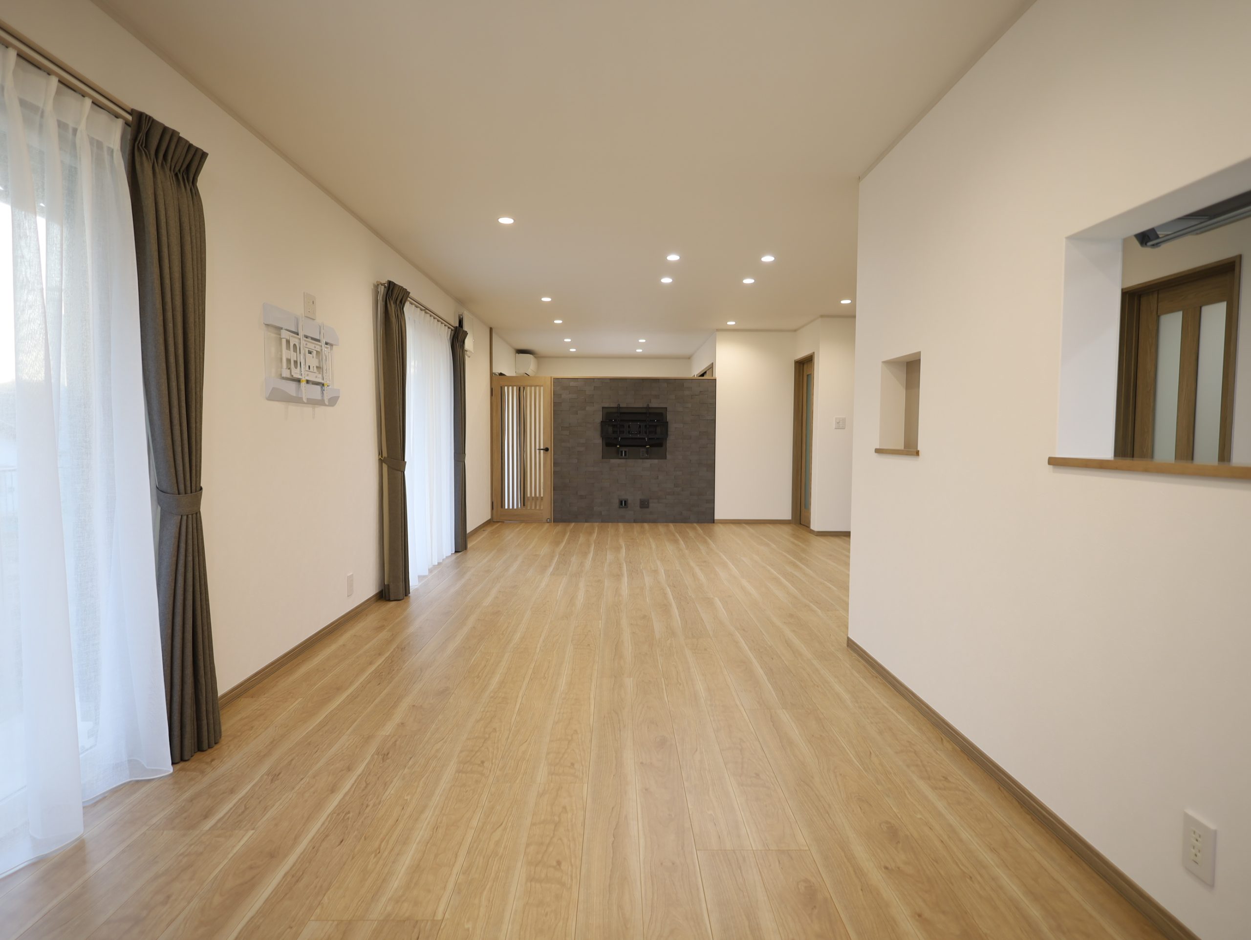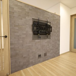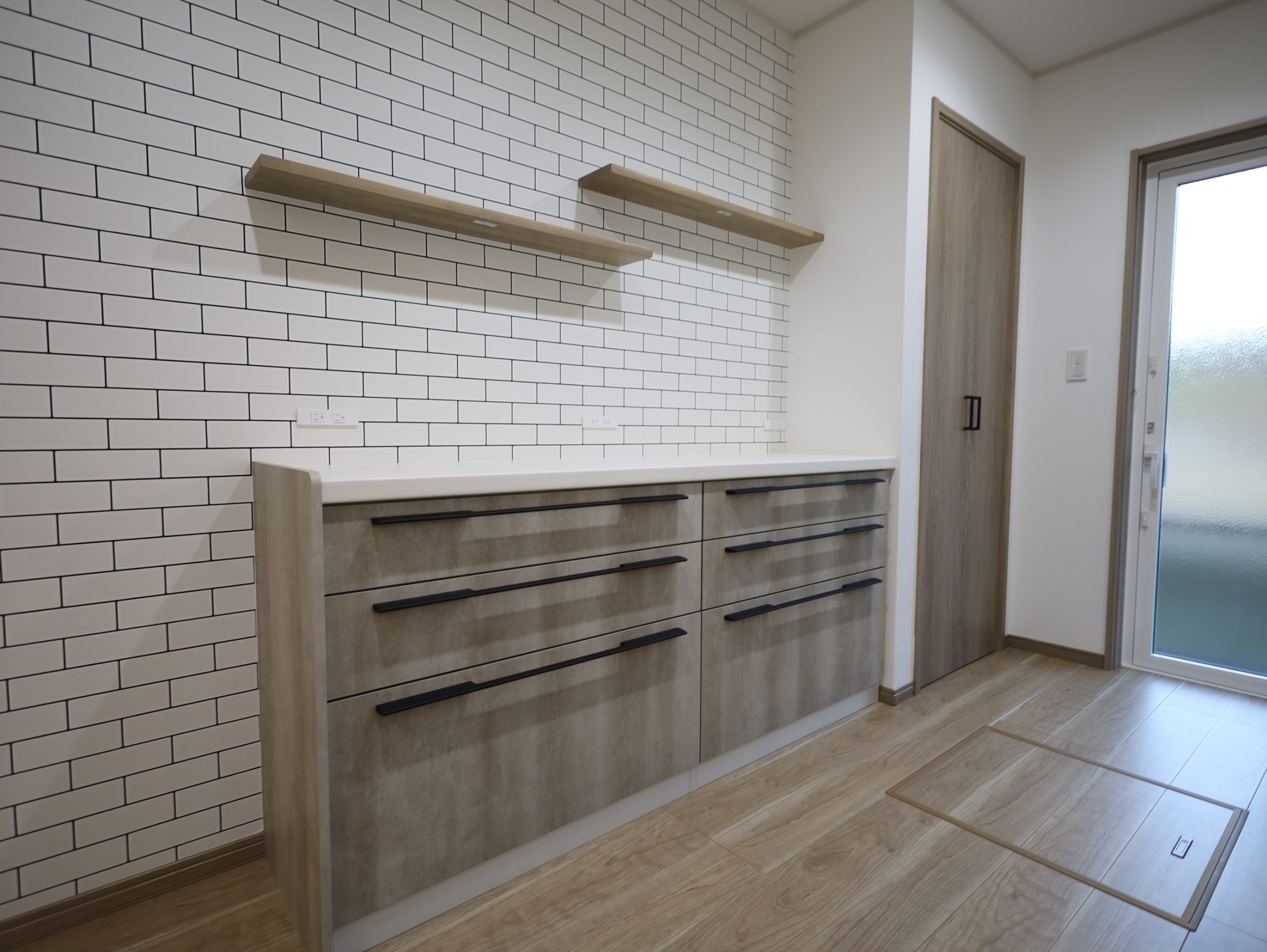 1階のすべてをフルリフォームし、新しい住まいに生まれ変わったマイホーム。独立した和室をペットルームにし、廊下と共にLDKに組み込んだことで家族とペットと暮らす広々とした大空間を実現。お客様を迎える玄関ホールには機能性タイルのエコカラットをデザイン貼りし、印象的な雰囲気に。キッチン、洗面化粧台、システムバスにはクリナップ製のハイグレードモデルを採用。リビングのTV背面にはダークカラーのエコカラットを施工し、空間に奥行を持たせながら高級感を演出。ご夫婦の夢をリフォーム工事で叶えた、お洒落で暮らしやすい北欧テイストの住まいが完成しました。
