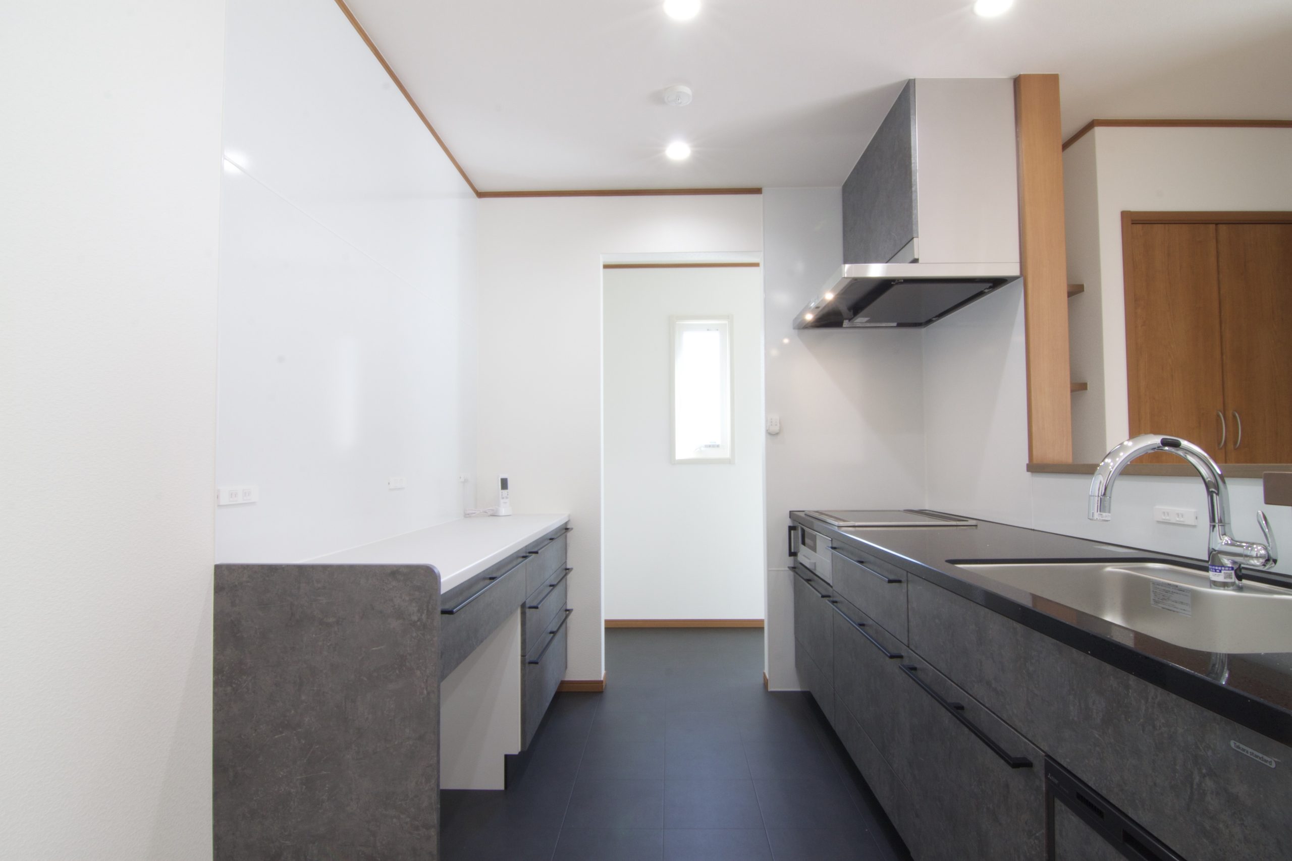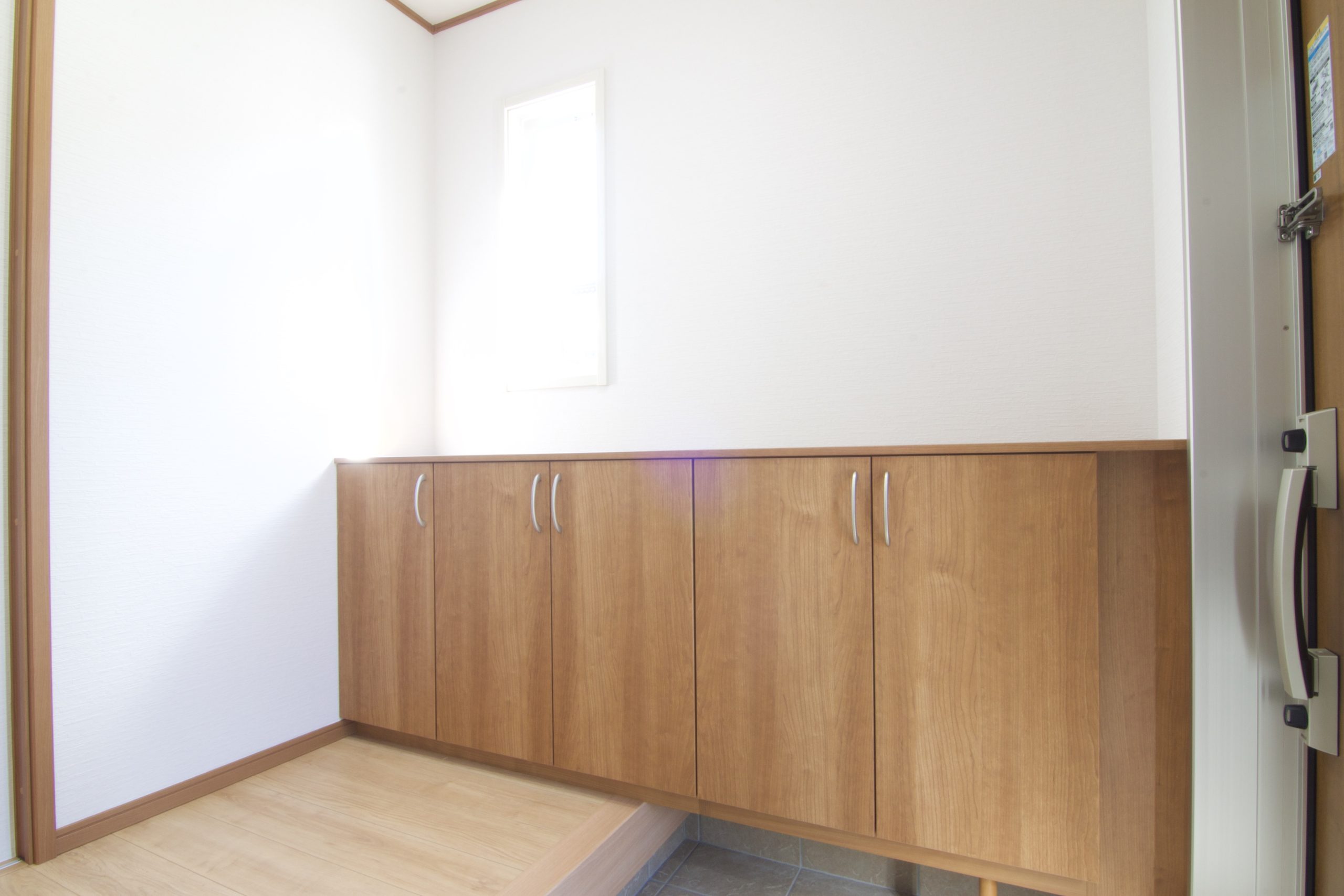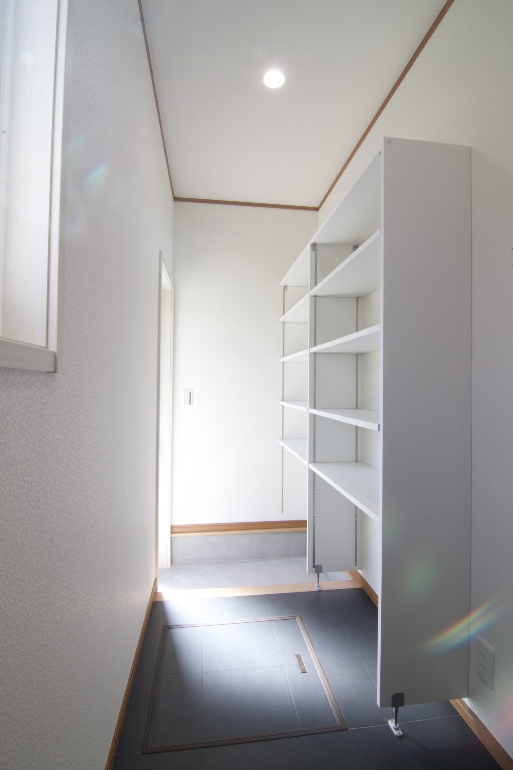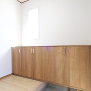 重厚感ある外壁に木目が映えるバランスの取れた外観。土間収納のある玄関とは別に設けられたプライベート玄関はパントリーに直結しお買い物後も楽に収納できます。明るいLDKのそばにはお籠り感ある畳コーナーを作り、安らぎの空間になりました。脱衣室を兼ねたランドリールームからはWクローゼットも近くお洗濯の片付けも楽々です。各居室はもちろん適材適所に収納を作ることで暮らしやすさも向上しました。