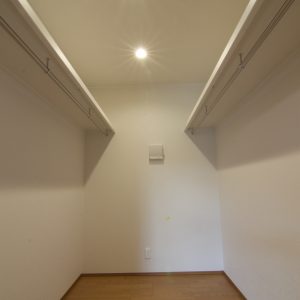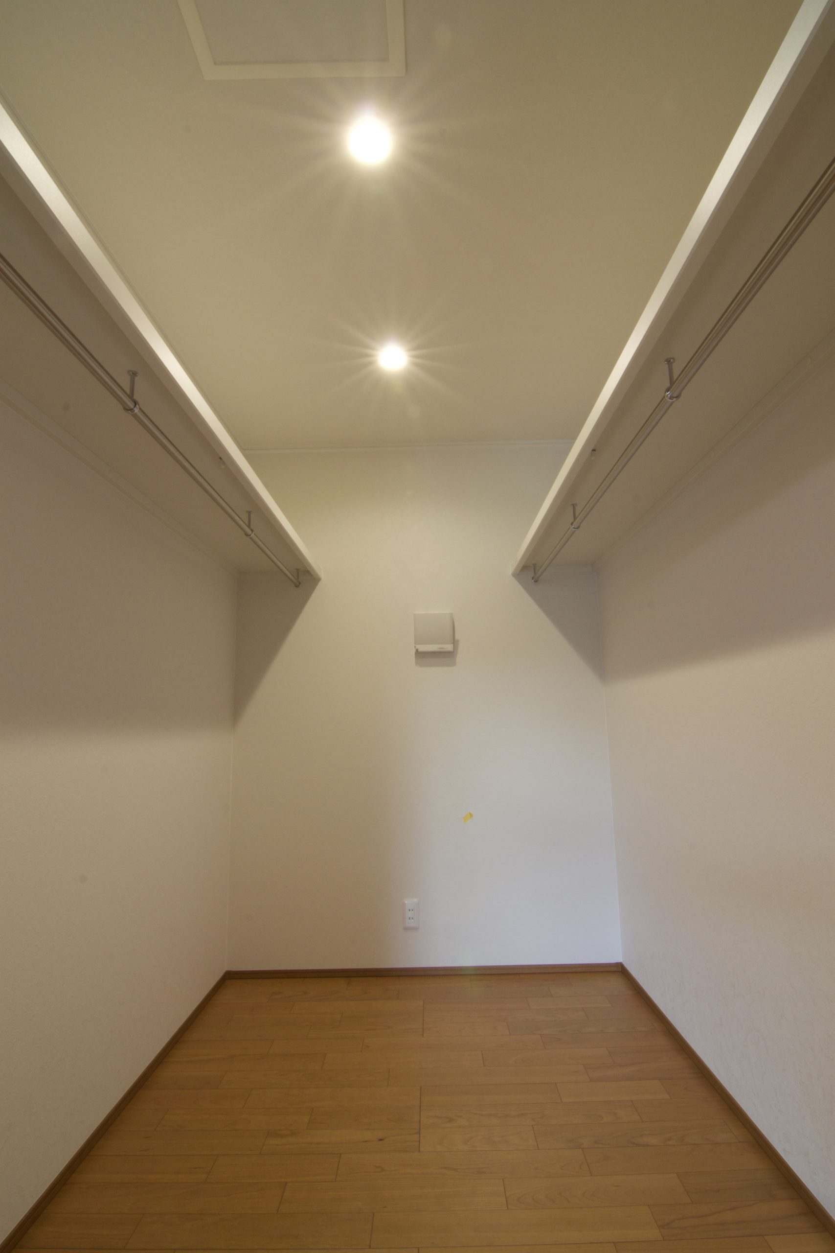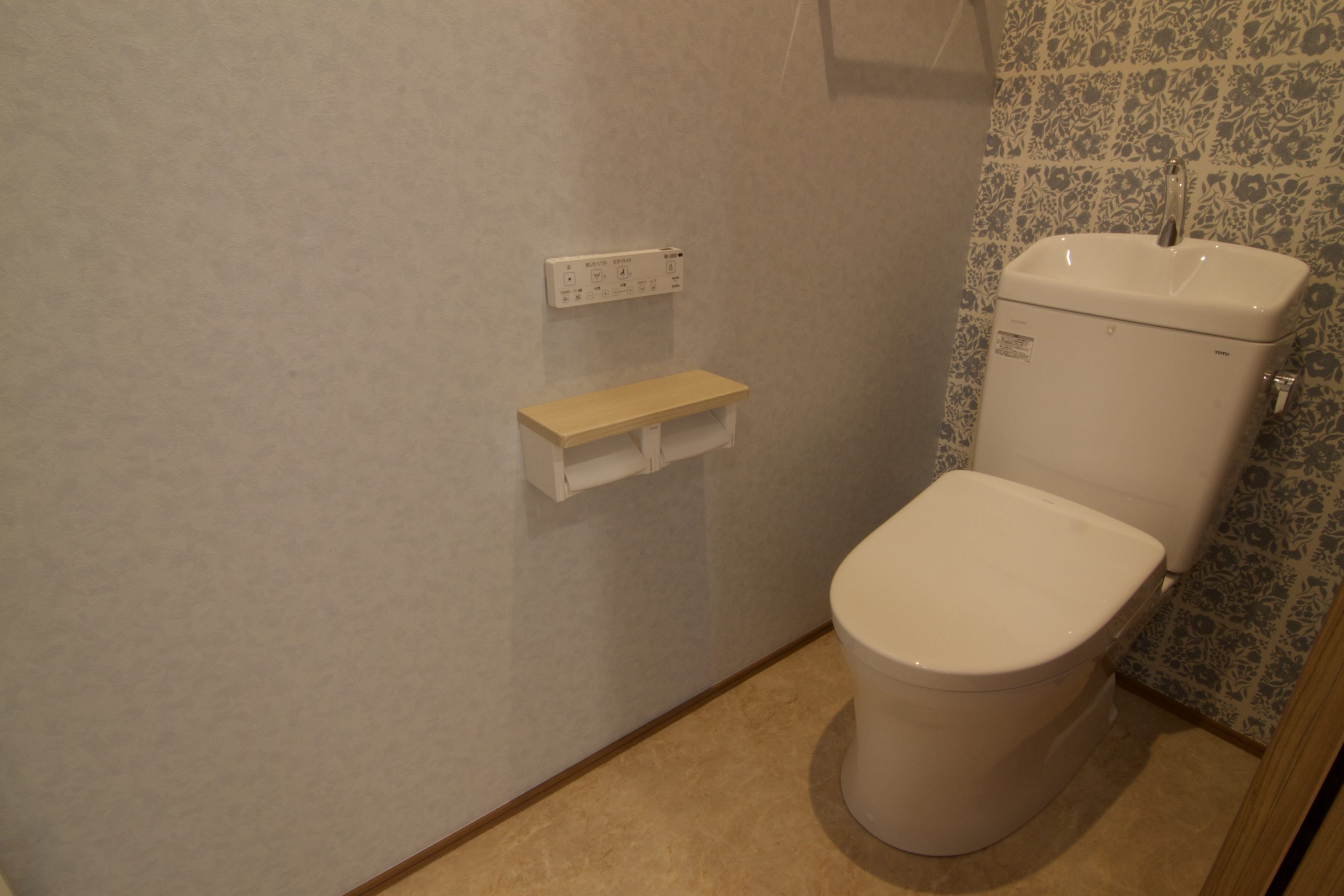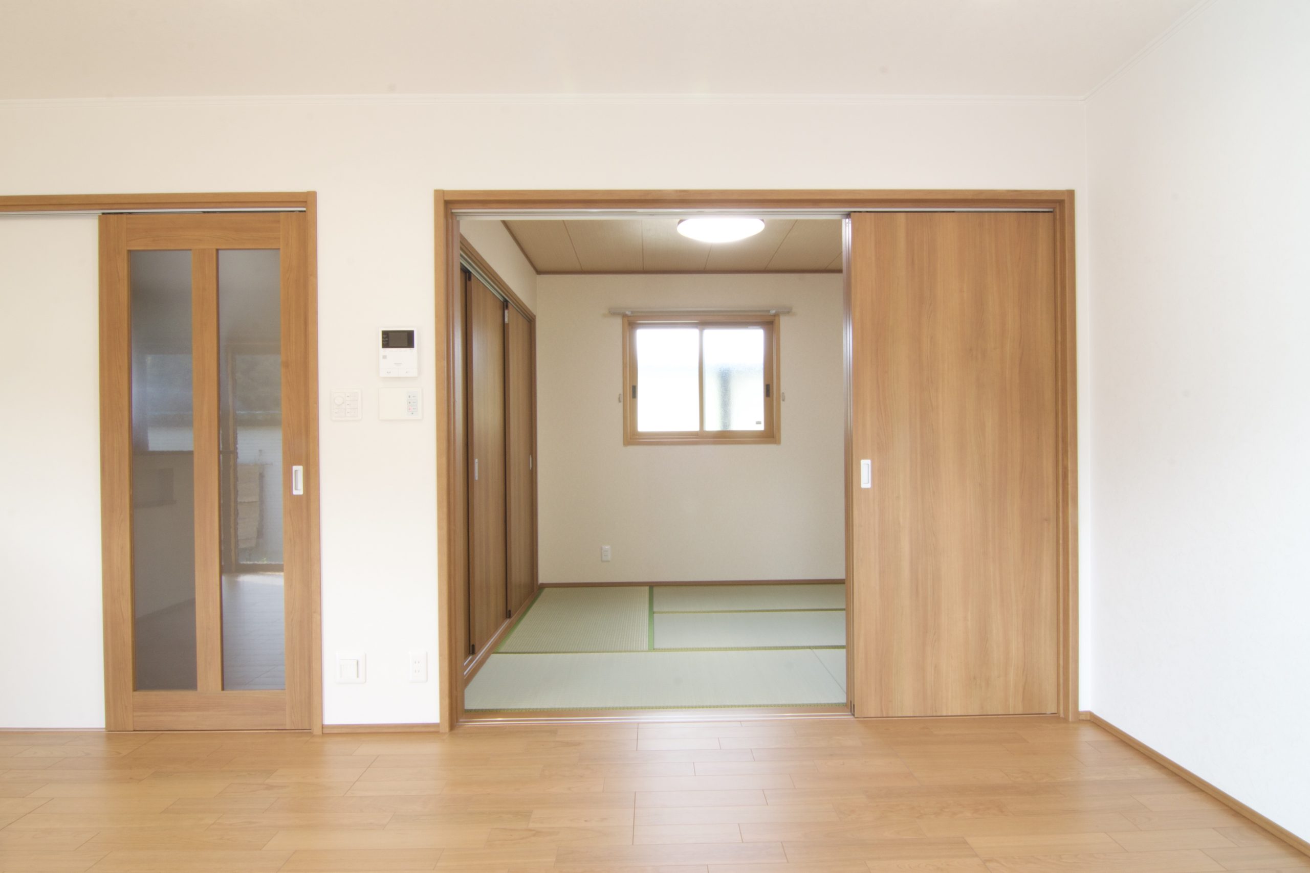 ネイビーにウッド調のサイディングが調和する上品な外観。室内は白を基調に建具もナチュラルな優しいコーディネートに統一。明るいLDKには4.5帖の和室も繋がりゆったりとくつろいでいただけます。キッチンには立ち上がり壁を付けてダイニング側にニッチを作りました。冷蔵庫の「出っ張り」も気にならないように設計し冷蔵庫と収納棚が一列に揃うように設置できます。収納量あるクローゼットを1階にも2階にも作りました。スッキリとして効率良く家事ができる、家族にゆとりが生まれるそんな素敵なお住まいの完成です。